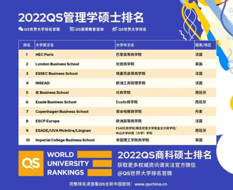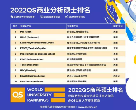 9月9日,QS机构发布了全球全日制MBA硕士专业,以及商科类五个专业的排名情况。